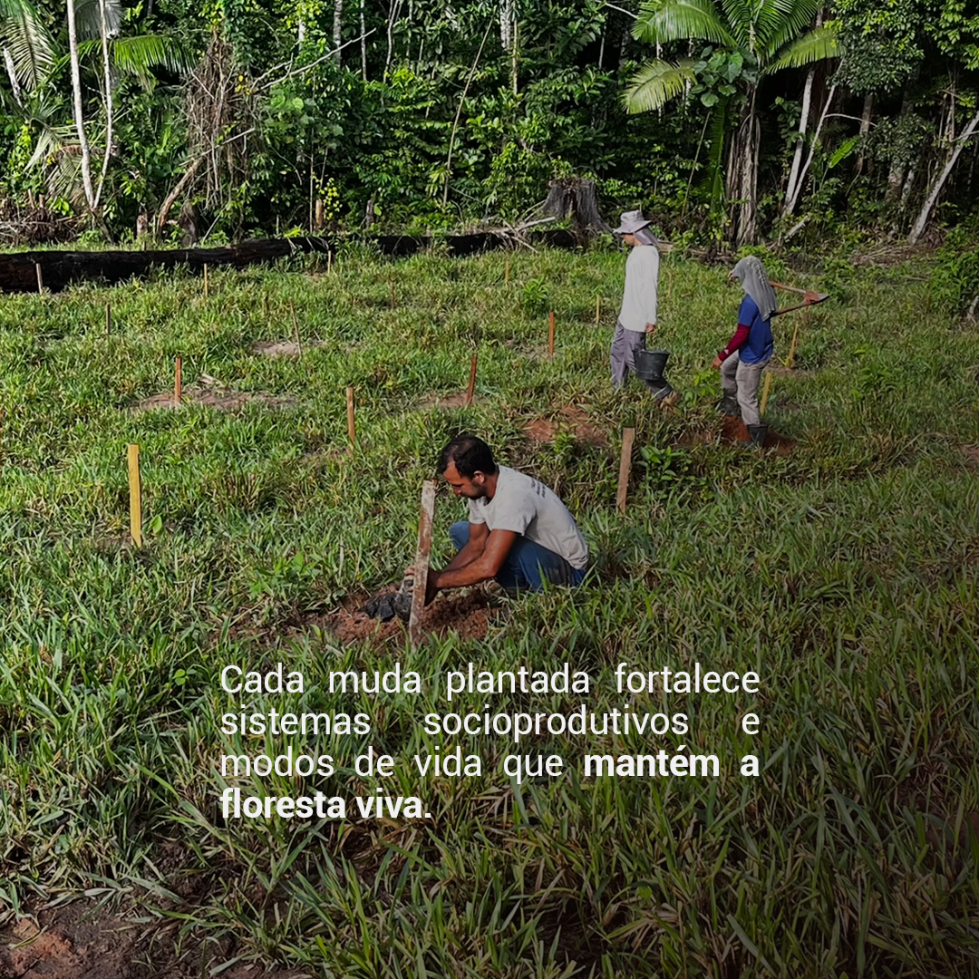 Cada muda plantada fortalece sistemas produtivos sustentáveis e mantém vivo o modo de vida das famílias que cuidam da floresta todos os dias.